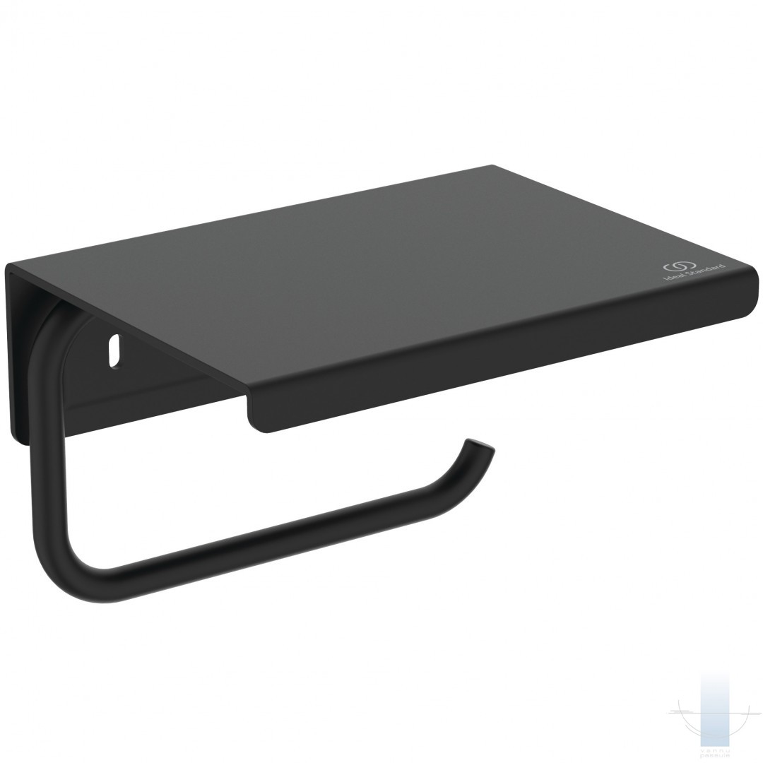 Sienas tualetes papīra turētājs (ar nelielu plauktiņu) matēti melnā krāsā.