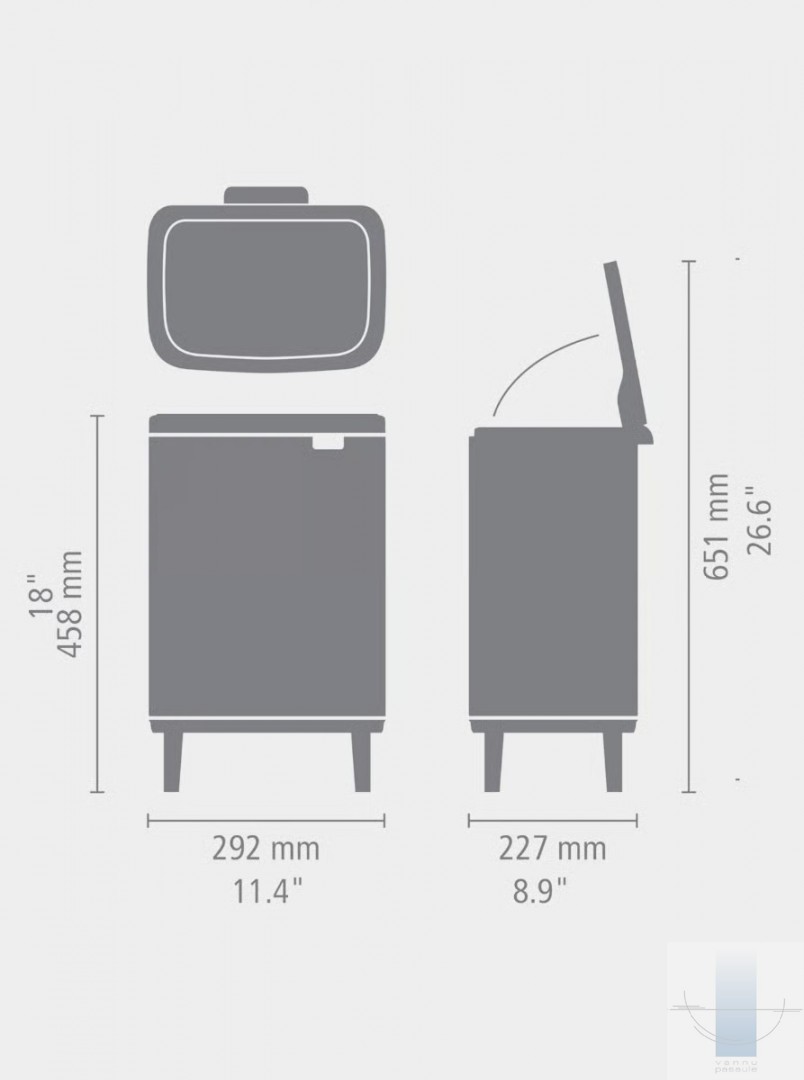 Brabantia Bo atkritumu tvertne Hi 12 litru ir skaistule uz četrām elegantām kājām. Unikālais vāks viegli paceļas no tvertnes kreisās, labās un priekšpuses. Tāpēc vairs nav jāgroza roka, lai kaut ko ievietotu. Vēl viens pluss: rokturis ērtai pārvietošanai un iztukšošanai. Pateicoties tās izmēram un dizainam, šī tvertne lieliski iederas jebkurā telpā. Pasaku tvertne!