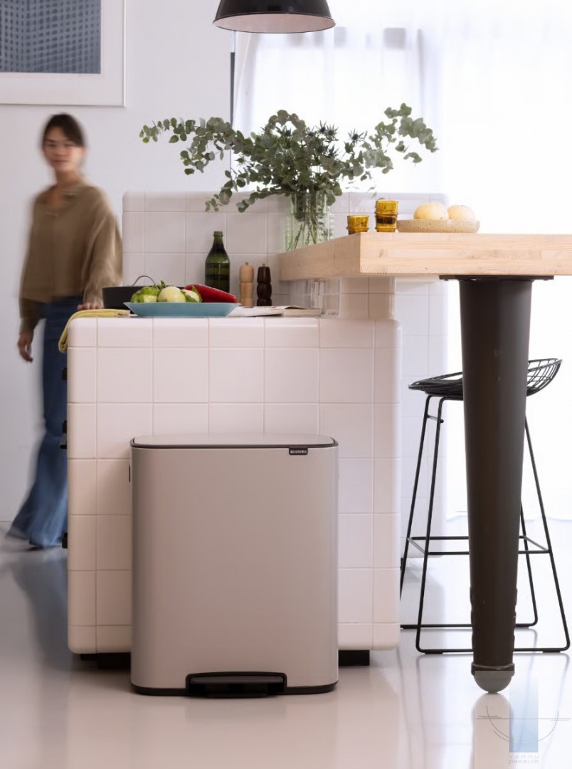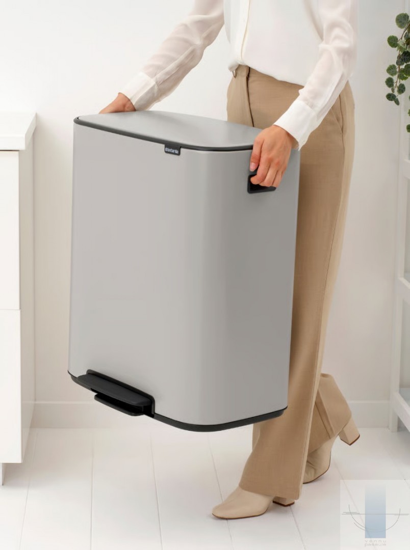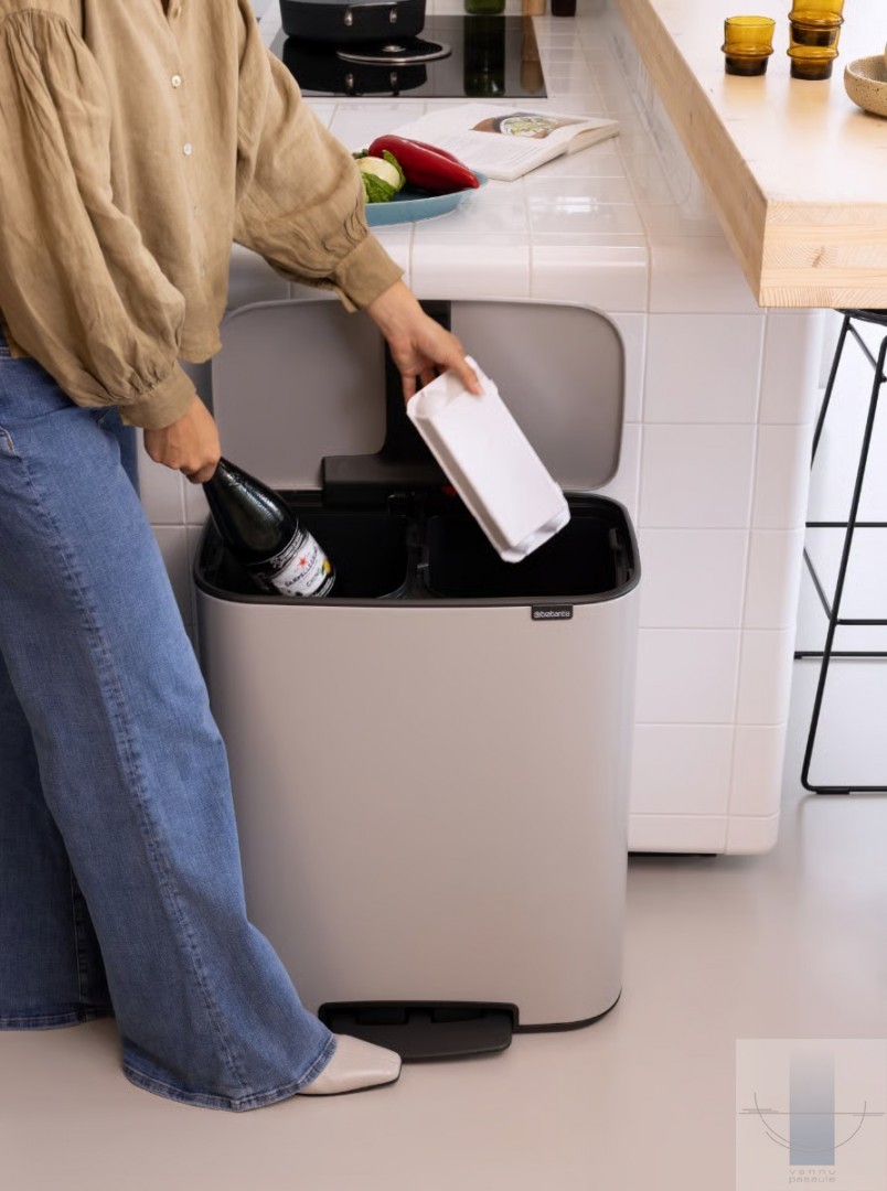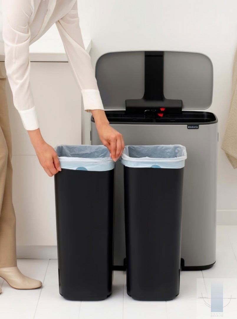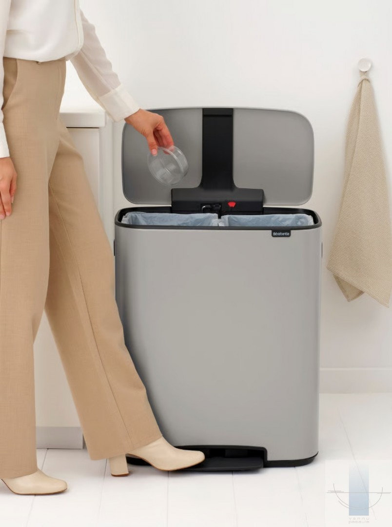 Meklējat skaistu risinājumu atkritumu šķirošanai? Šī Brabantia Bo atkritumu tvertne ar pedāli ir skaistule gan iekšpusē, gan ārpusē, ar diviem ietilpīgiem 30 litru noņemamiem iekšējiem spaiņiem divu veidu atkritumiem. Tā cieši pieguļ sienai, tai ir aizsargājoša neslīdoša pamatne, higiēniska un vienkārša pedāļa atvēršana un mīksta aizvēršana. Lieliska atkritumu tvertne vairākos veidos!