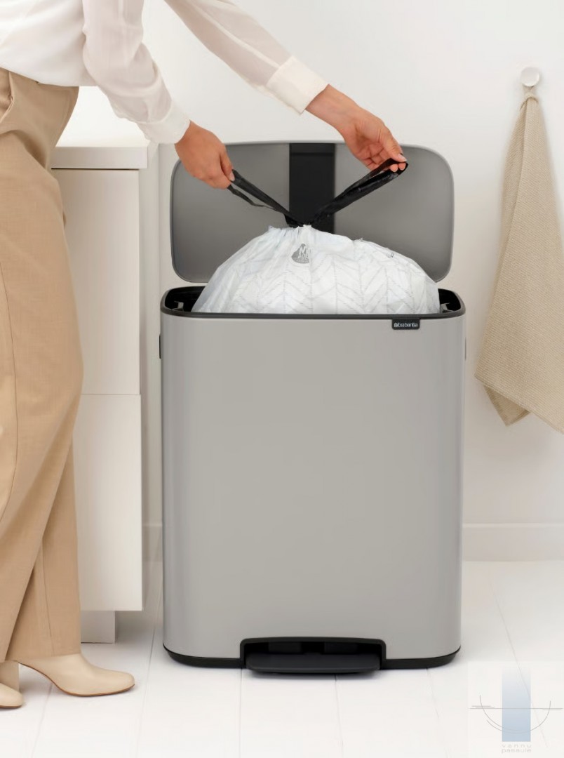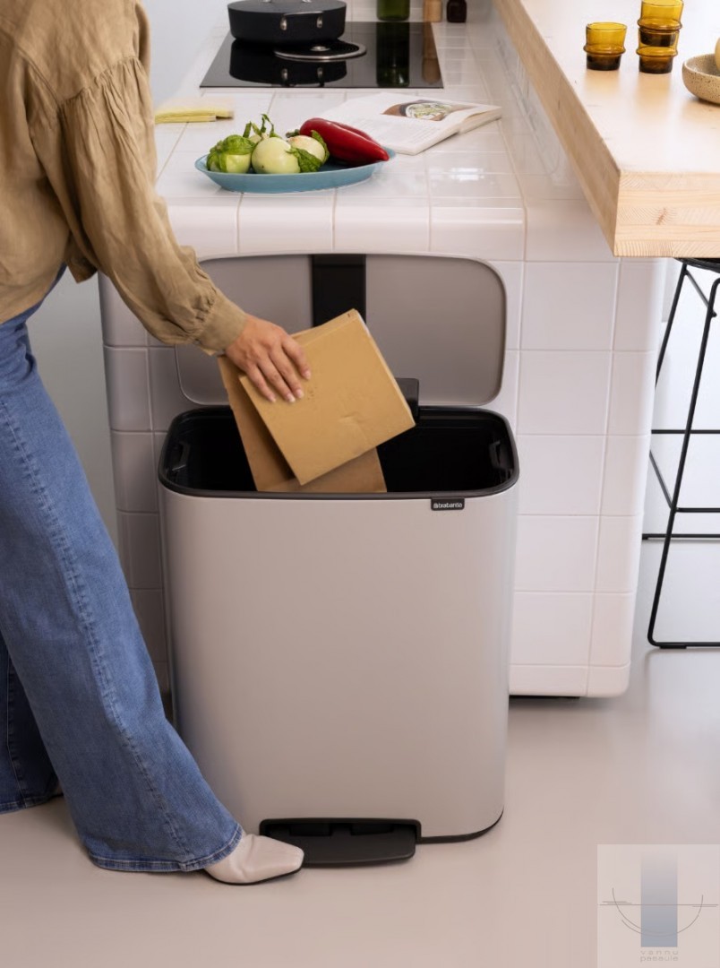 Vai vēlaties atkritumu tvertni, kas izskatās lieliski un ir ietilpīga? Iepazīstieties ar Bo atkritumu tvertni ar pedāli 60 litri - Brabantia lielo skaistuli. Šī XXL izmēra atkritumu tvertne var saturēt daudz atkritumu. Tai ir mīksti aizverams vāks, kas higiēniski atveras ar vienu kājas pieskārienu, un integrēti rokturi, lai to būtu viegli pārvietot. Radīta ilgam kalpošanas laikam, ar mīlestību pret jūsu mājām. Liels pluss!