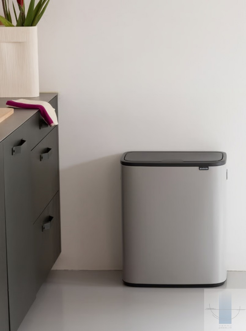 Meklējat XXL atkritumu risinājumu, kas atbilst jūsu stilam? Lielajai Brabantia Bo Touch atkritumu tvertnei 60 litri ir gan pievilcīgs izskats, gan spēja atkritumu apsaimniekošanā. Tai ir noņemams plastmasas iekšējais spainis un integrēti rokturi. Tā lieliski pieguļ sienai un ir arī ļoti vietas taupoša. Un tās mīkstā atvēršana nodrošina ērtu un vieglu lietošanu ar vienu rokas pieskārienu. XXL ērtības!
