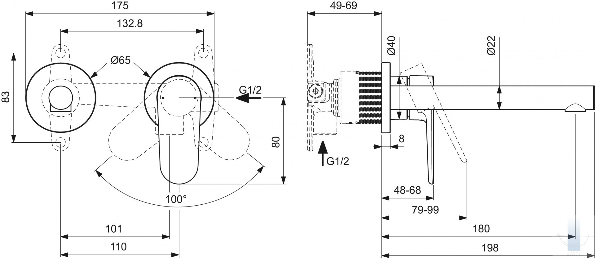 Ideal Standard Ceralife O izlietnes maisītājs no sienas 180 mm, Melns matēts