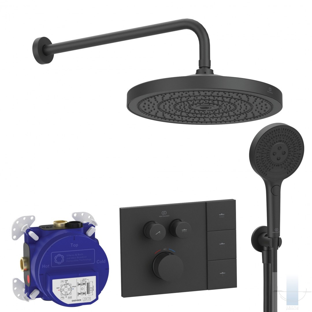 Ideal Standard Ceratherm Navigo Solos iebūvējamā dušas sistēma ar termostatu, Matt Black