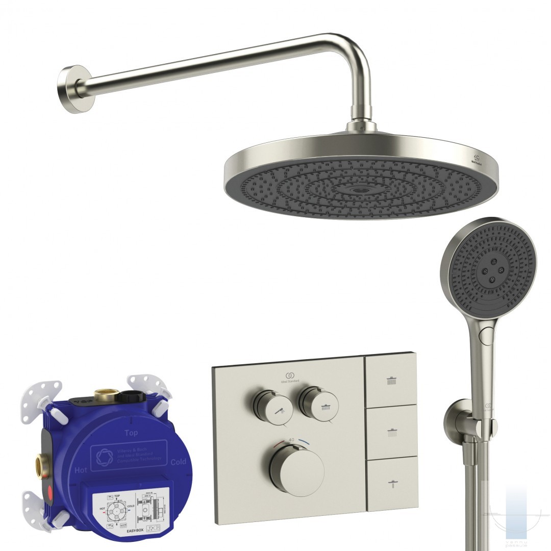 Ideal Standard Ceratherm Navigo Solos iebūvējamā dušas sistēma ar termostatu, Silver Storm