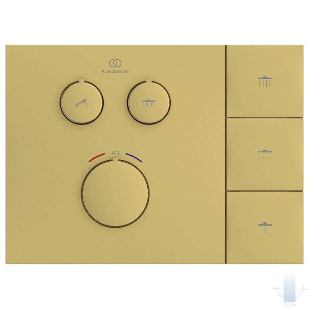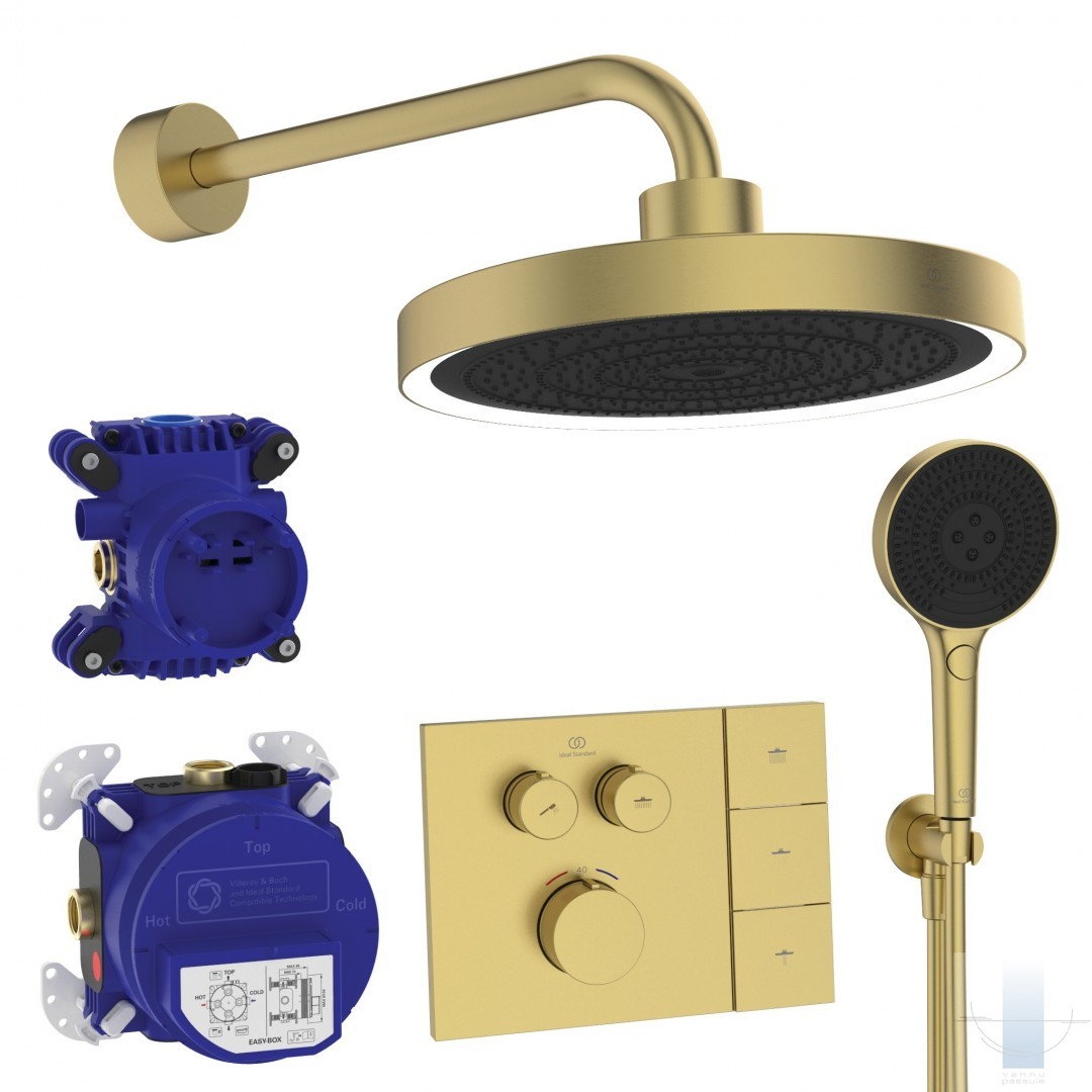 Ideal Standard Ceratherm Navigo Solos iebūvējamā dušas sistēma ar termostatu un LED dušas galvu, Brushed Gold