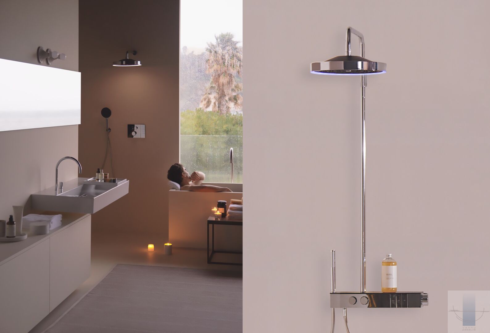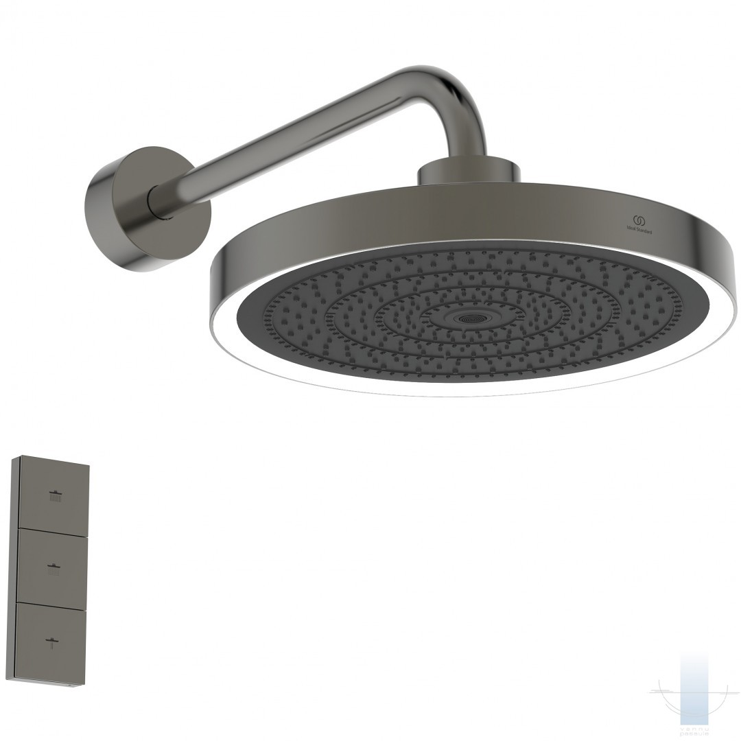 Ideal Standard Ceratherm Navigo Solos iebūvējamā dušas sistēma ar termostatu un LED dušas galvu, Magnetic Grey