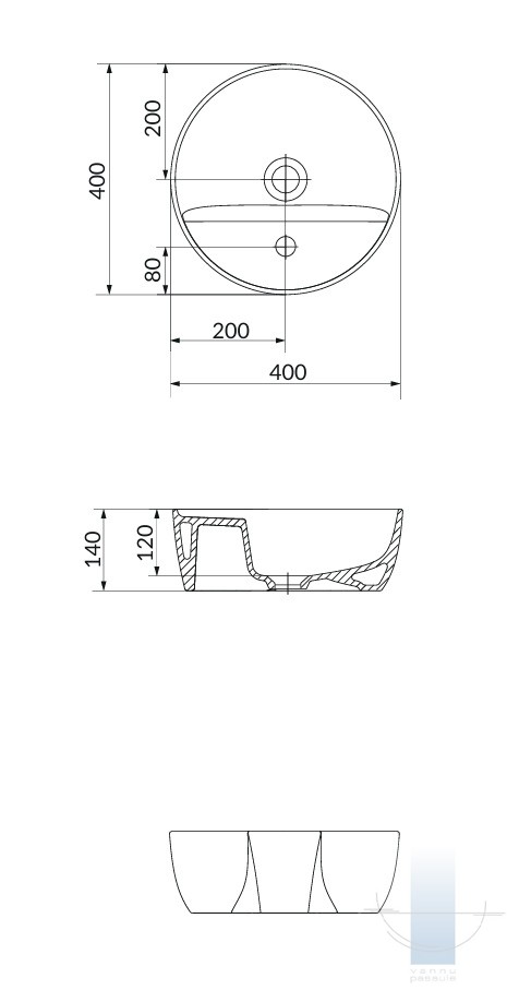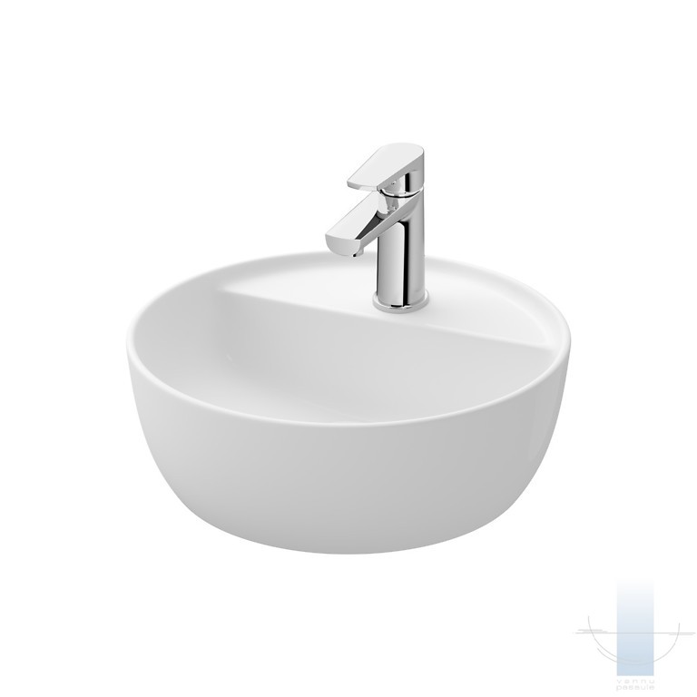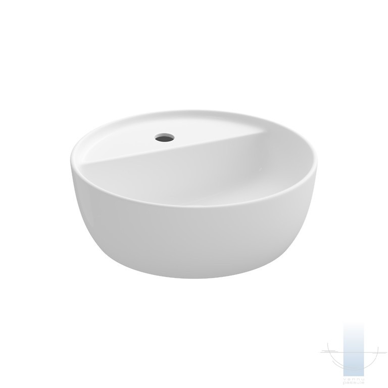 Uz virsmas novietojamā izlietne MODUO 40 (apaļas formas) ar plānām, 8 milimetru biezām sieniņām ir izgatavota no šamota keramikas.