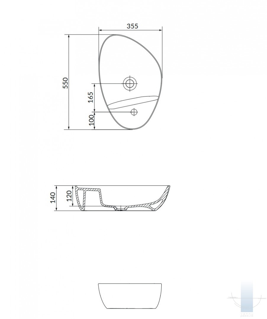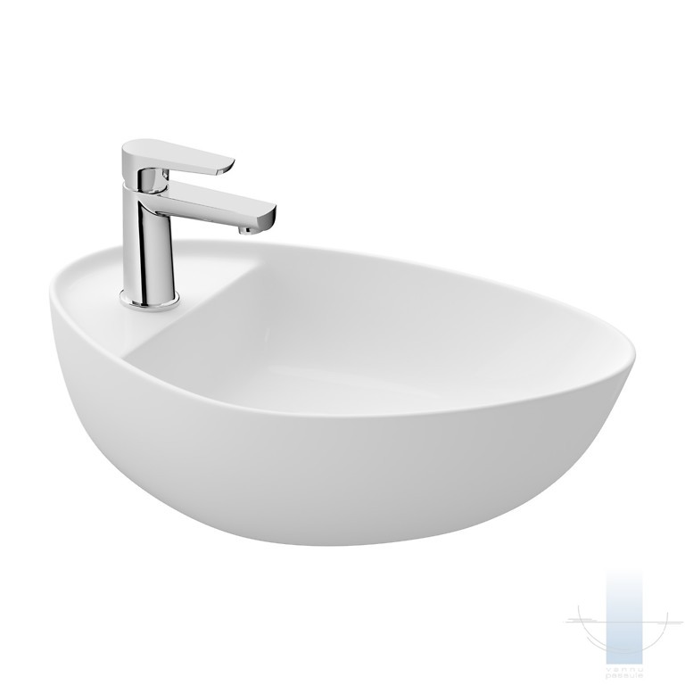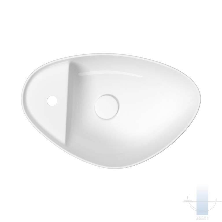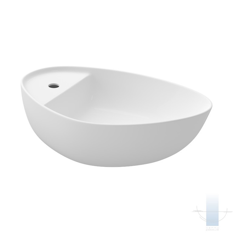 Uz virsmas novietojamā izlietne MODUO 55 (neregulāras formas) ar plānām, 8 milimetru biezām sieniņām ir izgatavota no šamota keramikas.