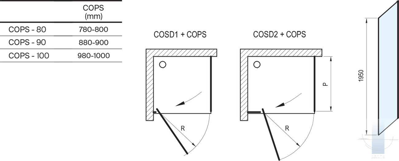 Cietā siena nav paredzēta lietošanai atsevišķi. Masīvu sienu var kombinēt tikai ar COSD1 un COSD2 dušas durvīm. Produkts tiek montēts vannas istabas paneļu stūrī uz RAVAK Perseus Pro, Perseus Pro Flat, Perseus Pro Chrome, Gigant, Gigant Pro, Gigant Pro Flat, Gigant Pro Chrome lietajām vannām vai tieši uz grīdas ar noteku vai grīdas noteku.
