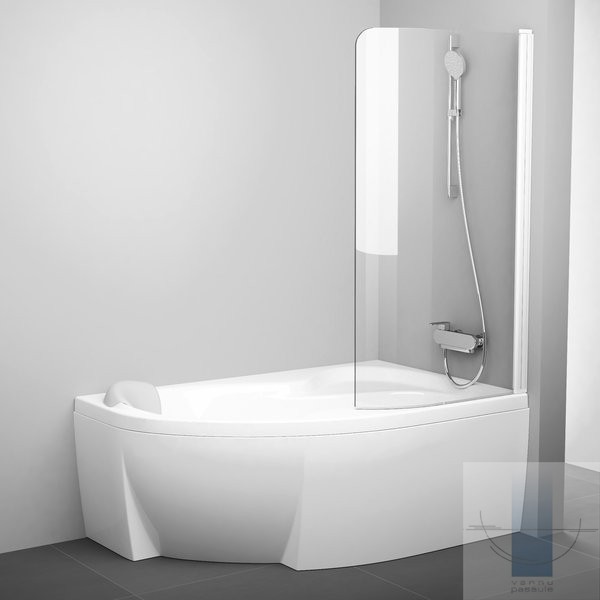 Ravak - CVSK1 Rosa vannas sieniņa 140x150 cm, Balta matēta/Transparent stikls