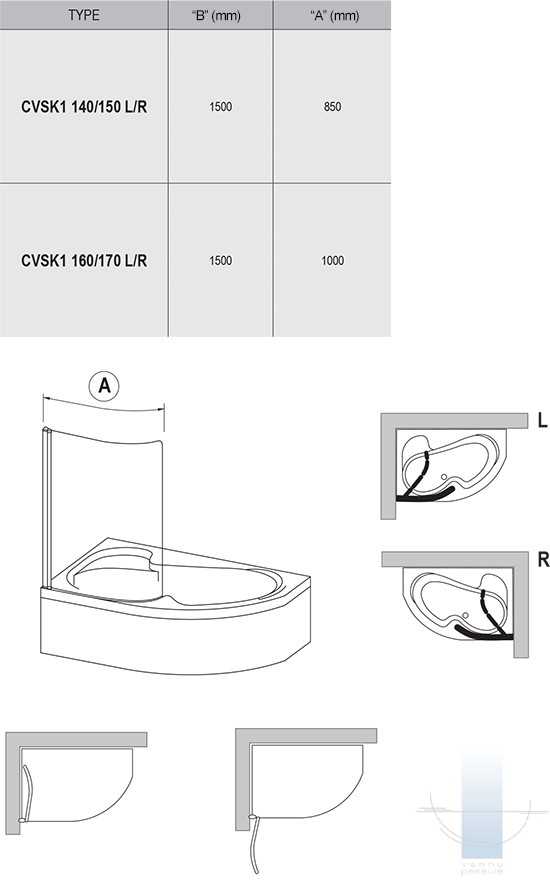 Greznā stikla sieniņa ir paredzēta vannai Rosa. Pagriežamais mehānisms ļauj salocīt sieniņu 180° leņķī uz vannas iekšpusi vai uz ārpusi pie sienas, kas atvieglo stikla kopšanu un nodrošina plašu ieeju vannā.