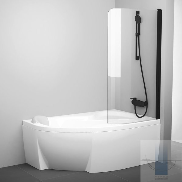 Ravak - CVSK1 Rosa vannas sieniņa 140x150 cm, Melns/Transparent stikls