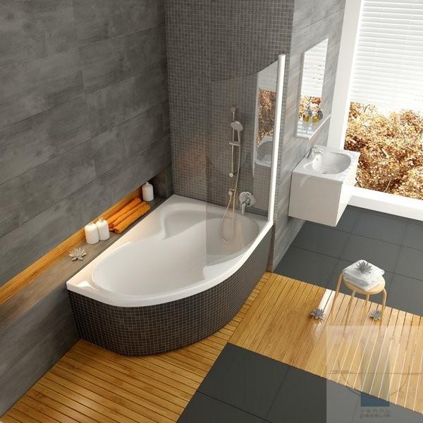 Ravak - CVSK1 Rosa vannas sieniņa 160x170 cm, Balta matēta/Transparent stikls