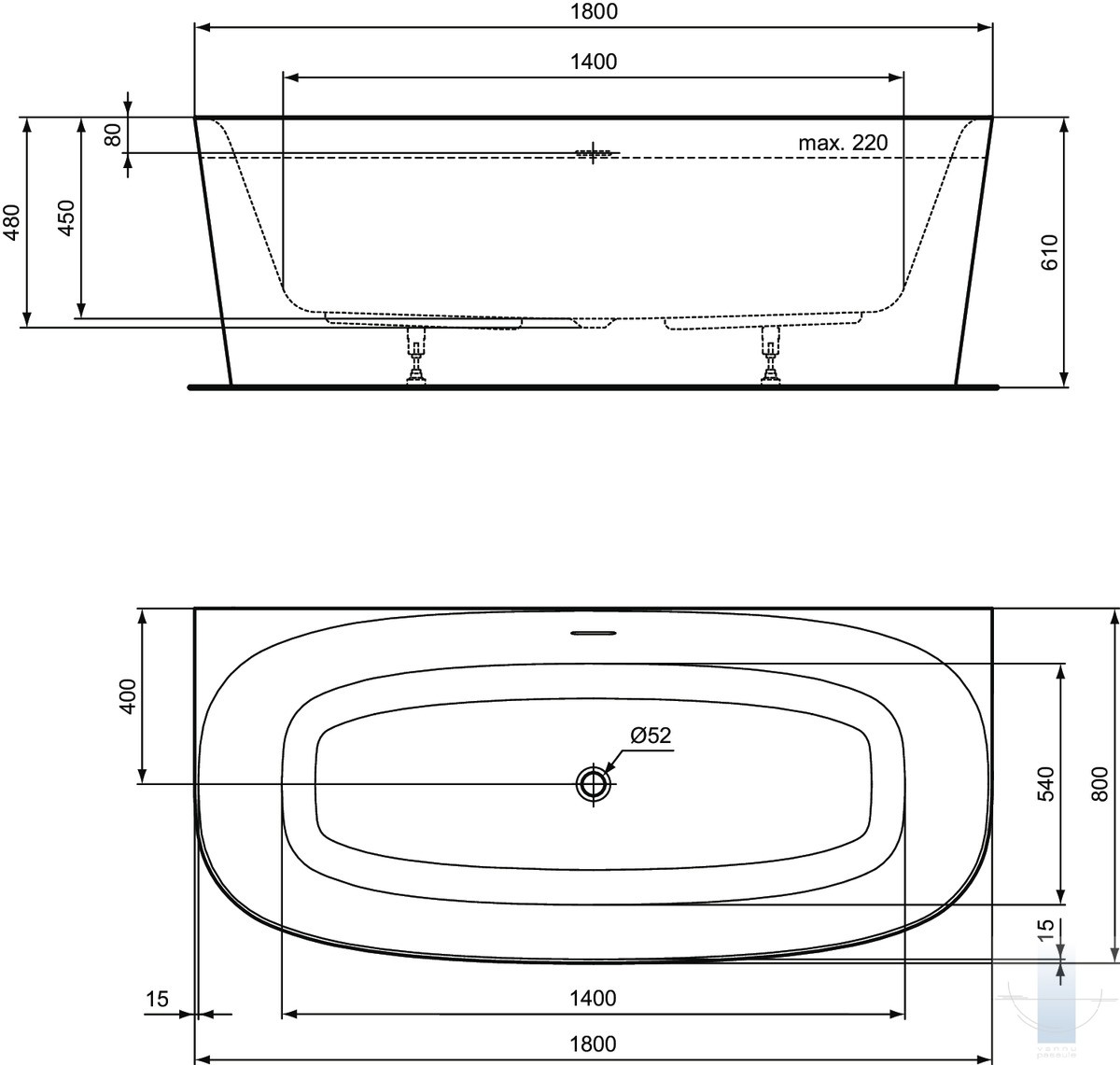 Ideal Standard - Dea brīvi stāvoša vanna pret sienu 180x80 cm, Melna matēta