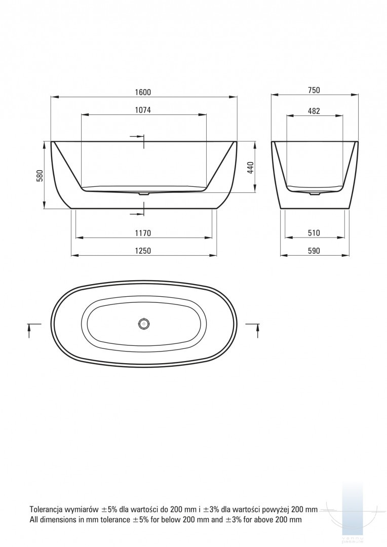 Deante Alpinia Akrila vanna, brīvi stāvoša, ovāla - 160 cm