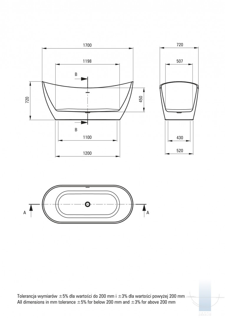 Deante Arnika Akrila vanna, brīvi stāvoša, ovāla - 170 cm