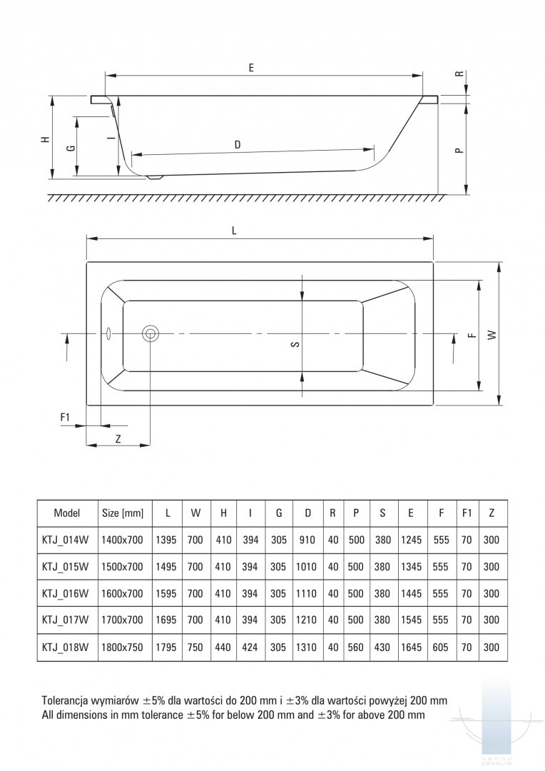 Deante Prizma Akrila vanna, nišas uzstādīšana - 170 cm