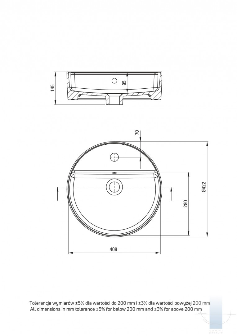 Deante Round Keramikas izlietne, uz virsmas, ar plauktu krānam