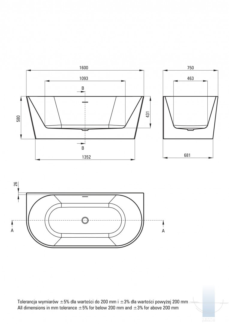 Deante Silia Akrila vanna, pie sienas piestiprināma/brīvi stāvoša - 160 cm
