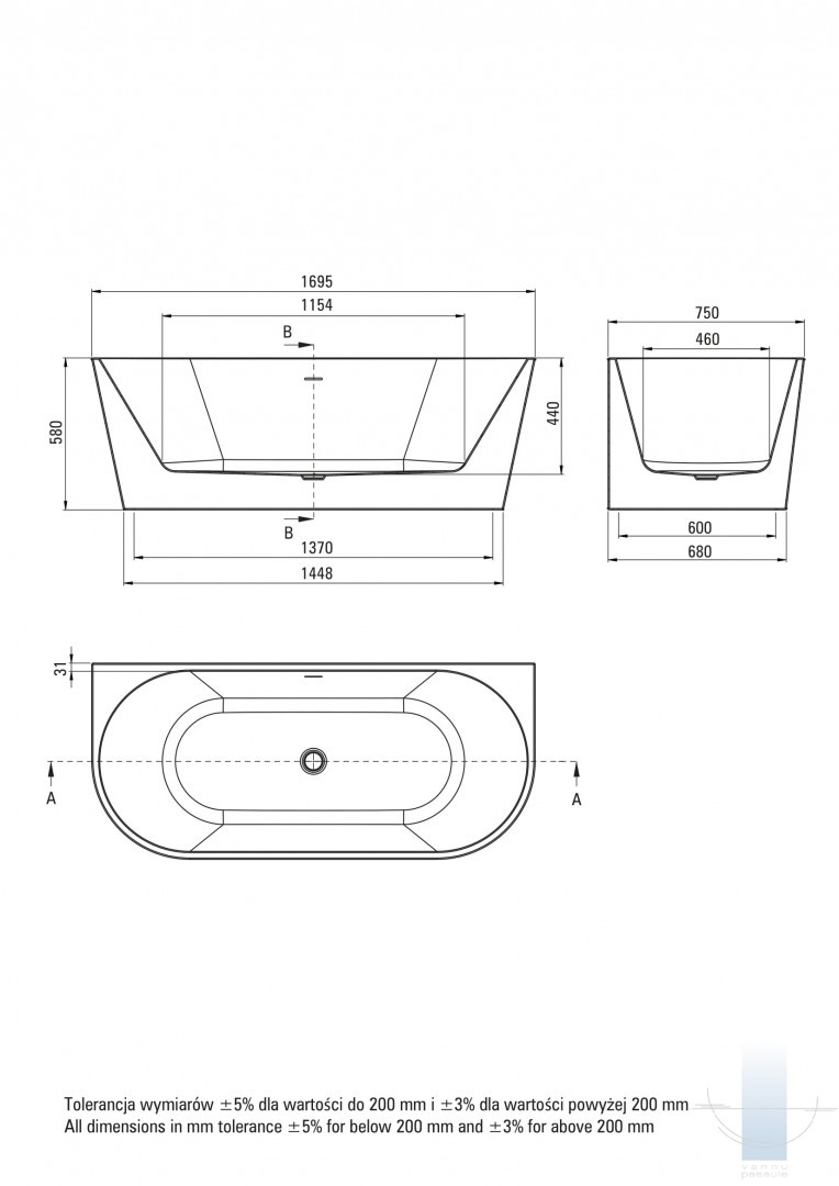 Deante Silia Akrila vanna, pie sienas piestiprināma/brīvi stāvoša - 170 cm