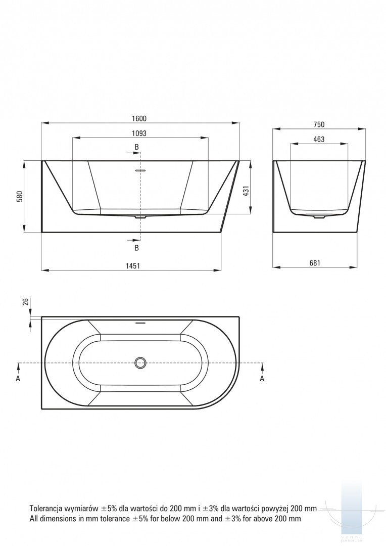 Deante Silia Akrila vanna, stūra/brīvi stāvoša, kreisā - 160 cm