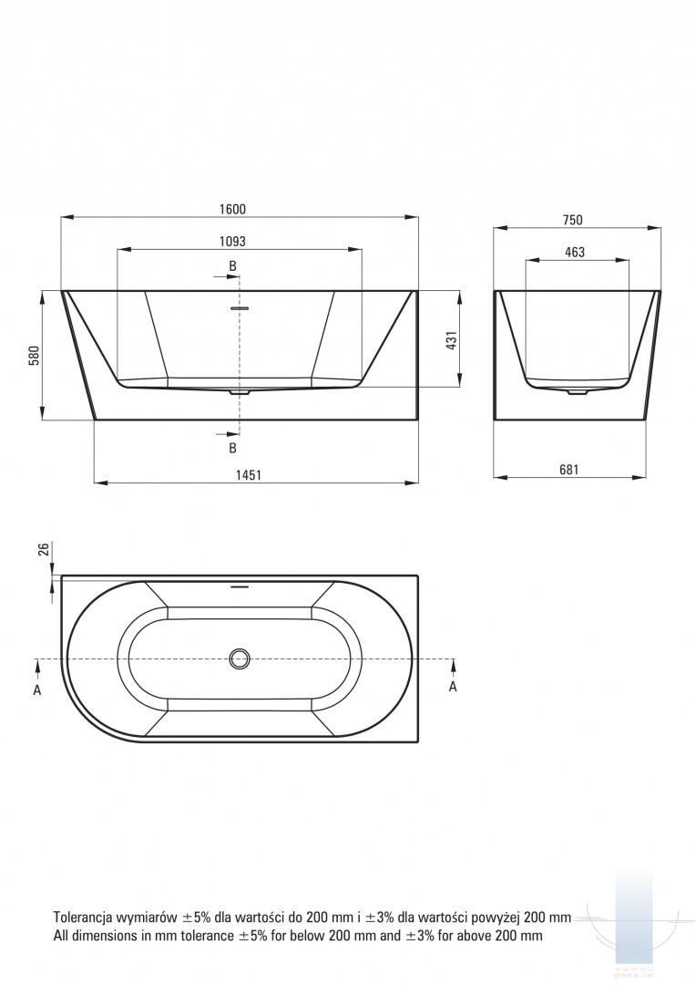 Deante Silia Akrila vanna, stūra/brīvi stāvoša, labā - 160 cm