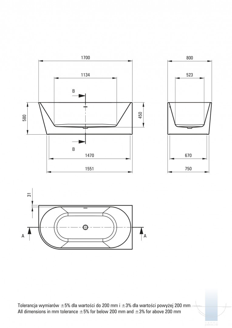 Deante Silia Akrila vanna, stūra/brīvi stāvoša, labā - 170 cm