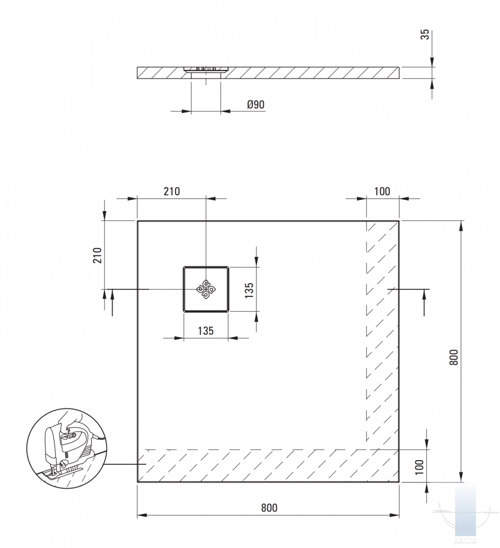 *Komplektēt ar NHC_029D EASY-CLEAN – dušas paliktņa sifona komplekts, tīrāms no augšas – hromēts!