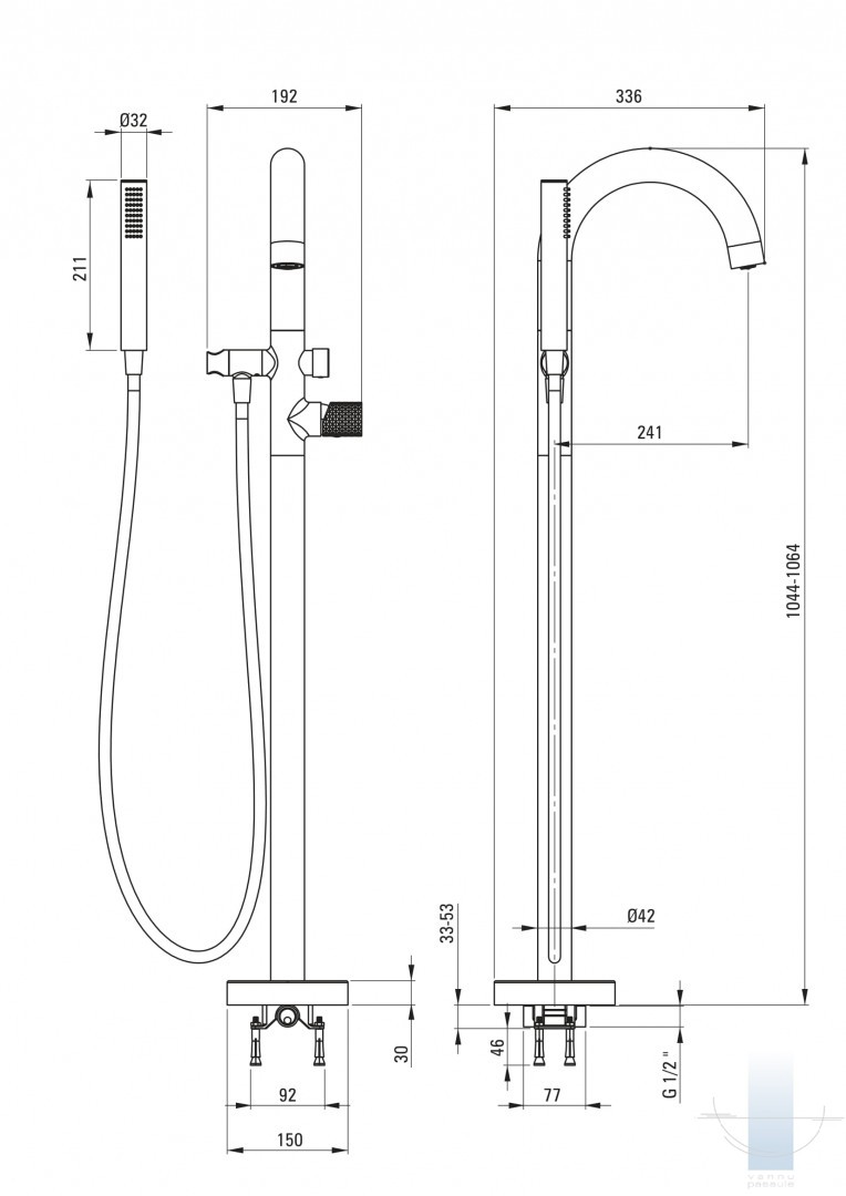Deante Silia Hexa Vannas maisītājs, brīvi stāvošs, ar dušas komplektu