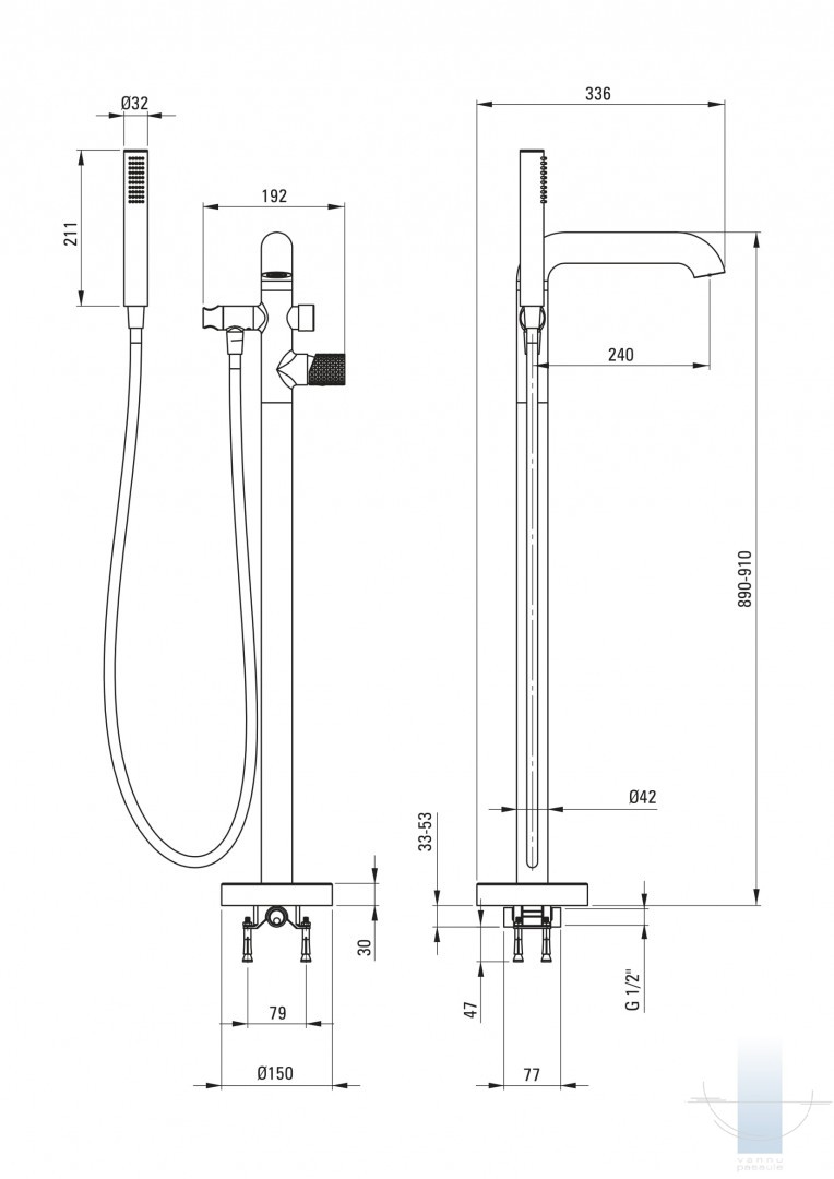 Deante Silia Hexa Vannas maisītājs, brīvi stāvošs, ar dušas komplektu