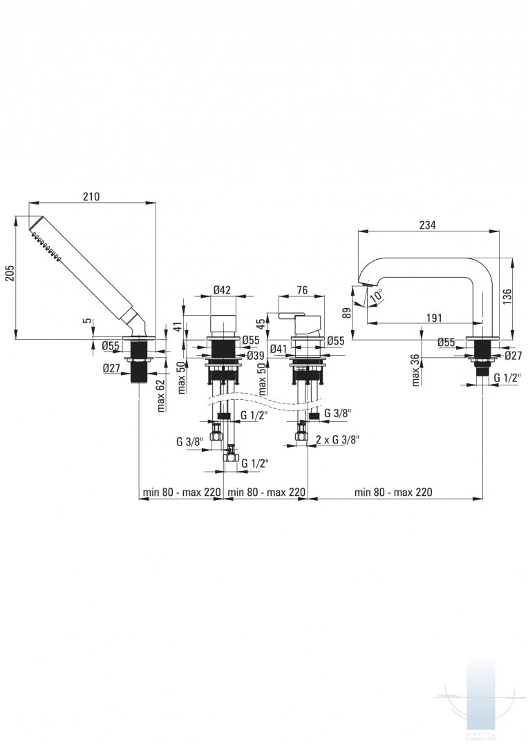 Deante Silia Vannas maisītājs, 4 caurumi, ar dušas komplektu