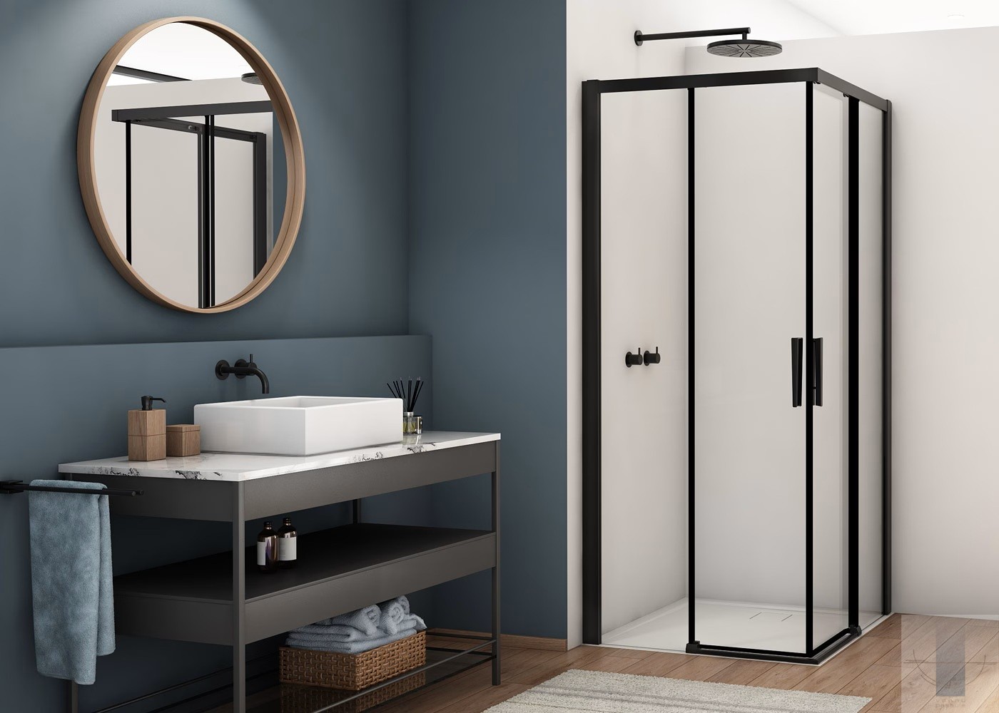 Divera D22SE2B kantains dušas stūris ar bīdāmām durvīm 80x80 cm, Black/Clear glass