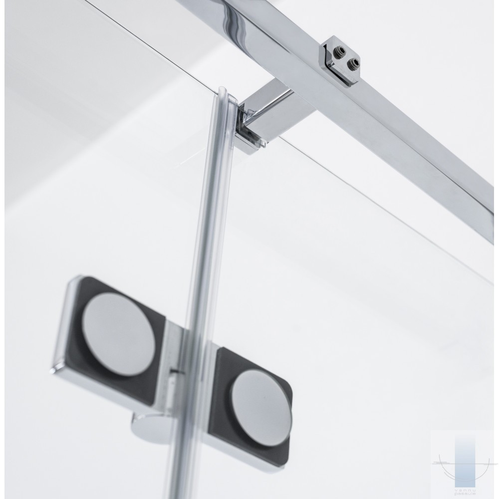Triecienu izturīga 6 mm bieza caurspīdīga stikla siena ar hromētu furnitūru.