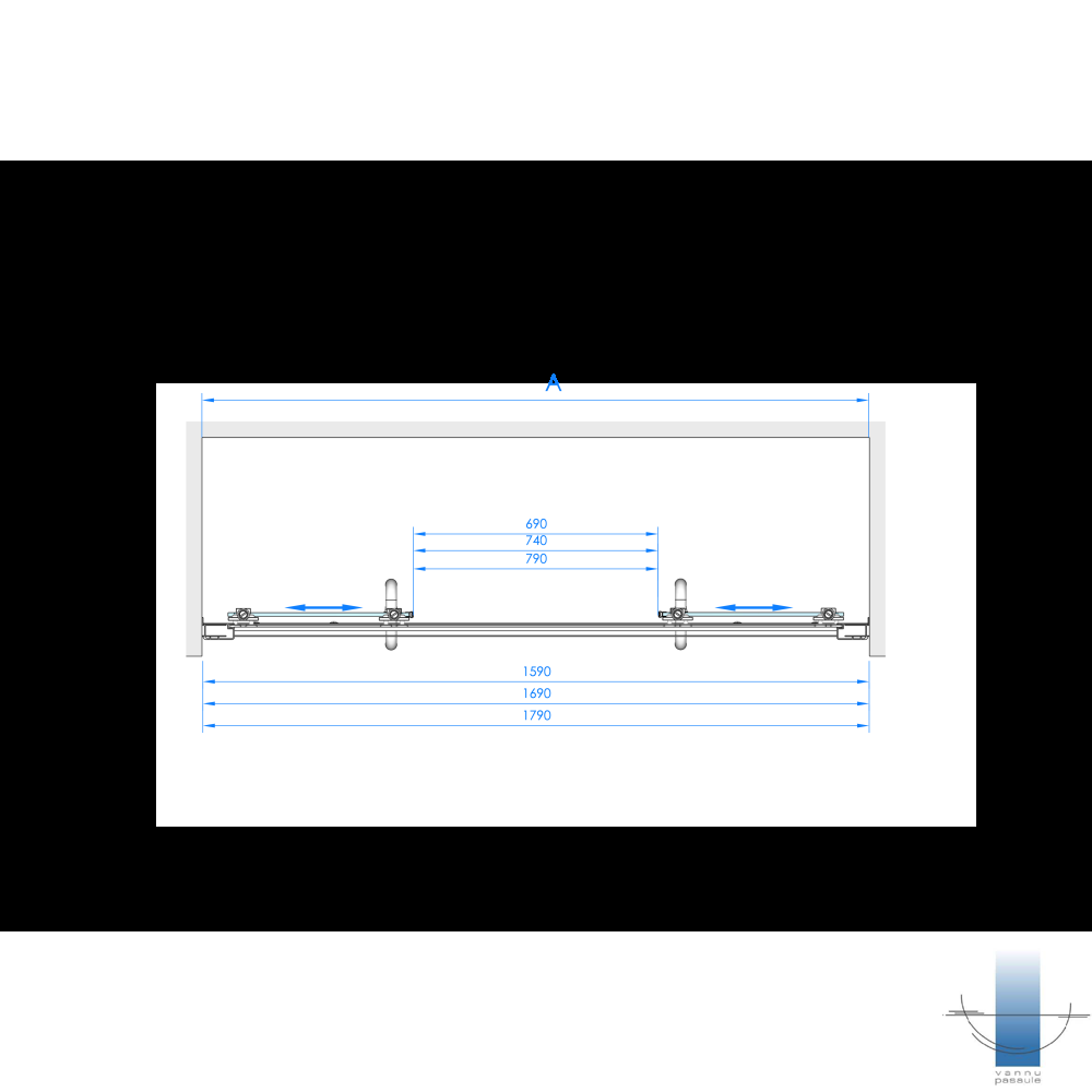 Dušas siena ar divām bīdāmām durvīm ļoti platām nišām. Ārkārtīgi kompakta, ir piemērota vannas istabām ar sarežģītu plānojumu. Piemērota īpaši platām nišām. Iespējams pasūtīt standarta un nestandarta izmērus. Piemērota uzstādīšanai blakus WC modulim vai citam vannas istabas aprīkojumam. Atšķiras ar īpašu hermētiskumu un drošību.