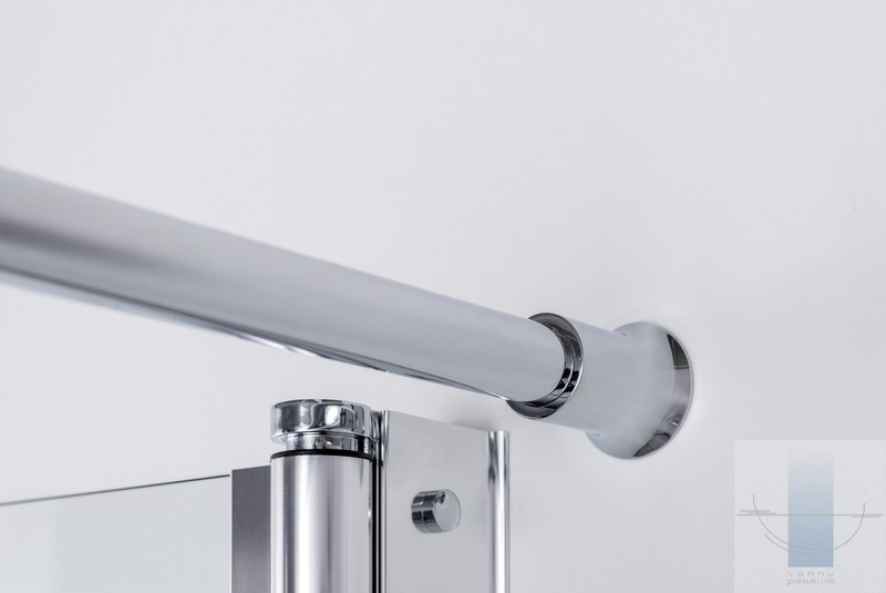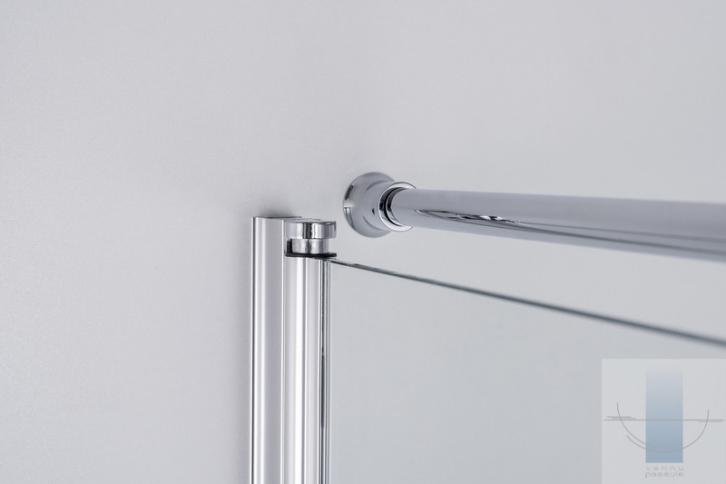 Triecienu izturīga 6 mm bieza caurspīdīga stikla dušas siena ar melnu matētu furnitūru.