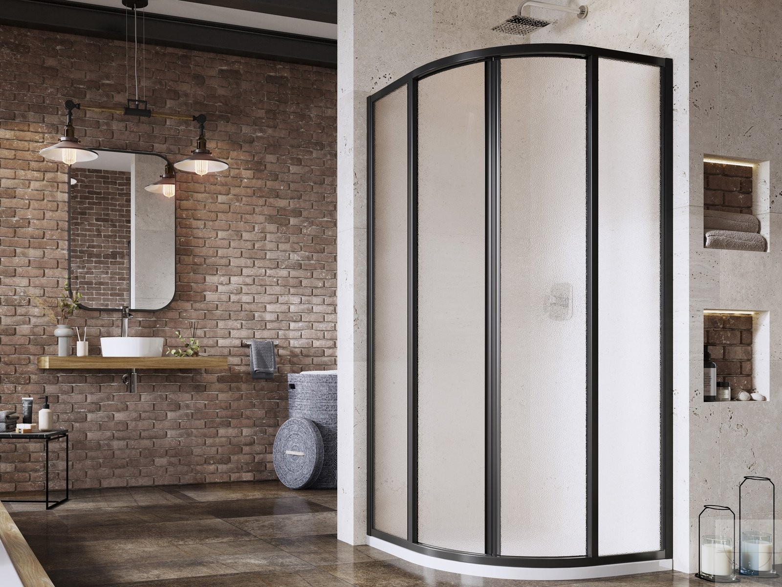 Produkts sastāv no diviem fiksētiem taisniem paneļiem un diviem izliektiem paneļiem, kas veido bīdāmās durvis. Produkts paredzēts uzstādīšanai flīzētā vannas istabas stūrī uz Ravak Ronda, Elipso, Elipso Pro, Elipso Pro Chrome dušas paliktņiem vai tieši uz grīdas ar iebūvētu dušas kanālu vai punktveida noteku.