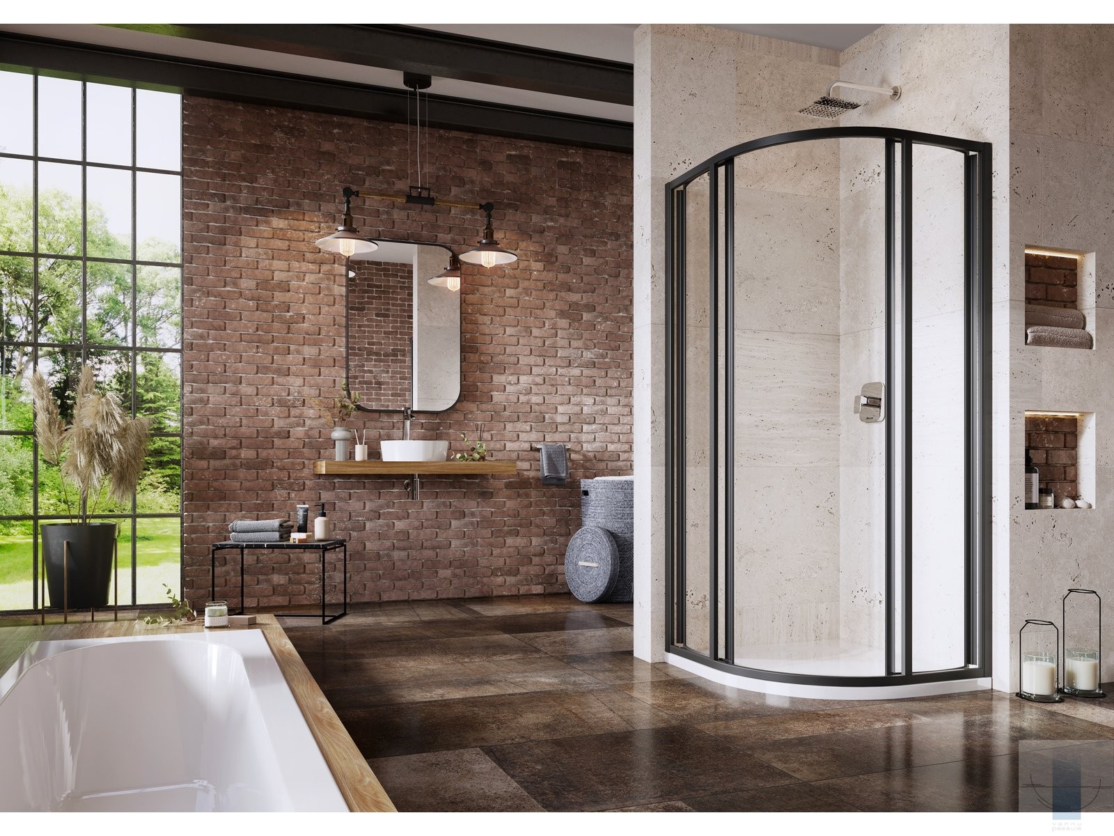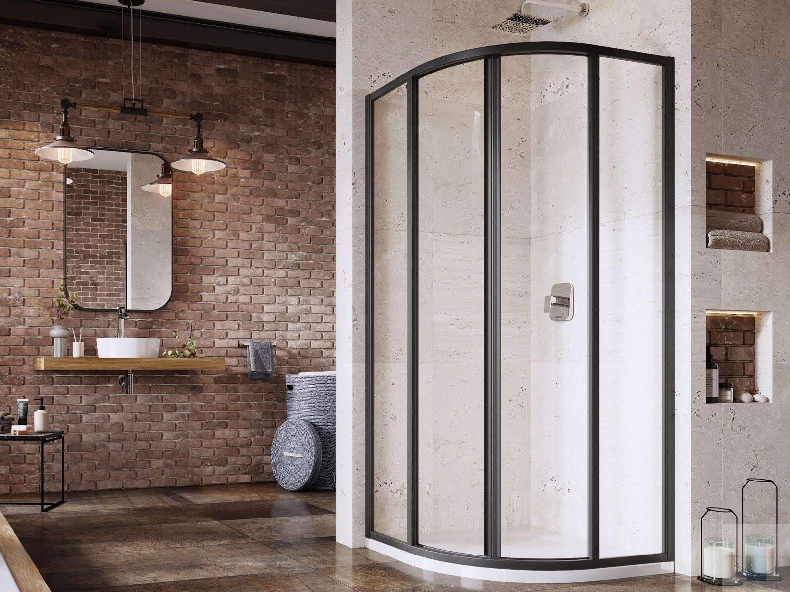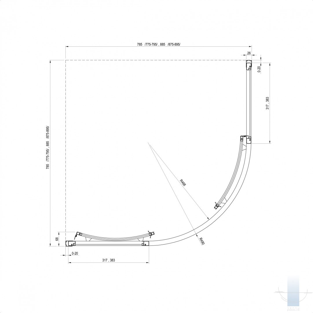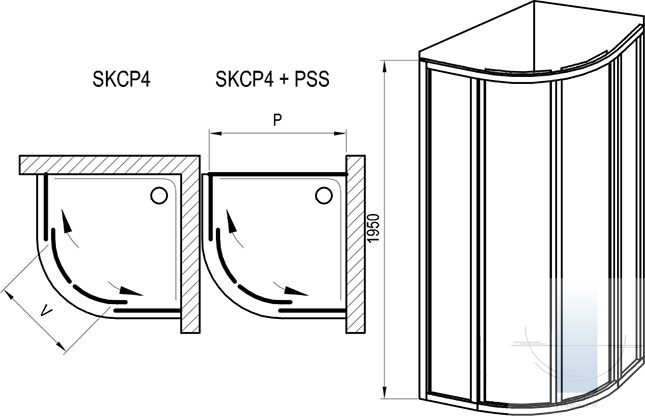 Produkts sastāv no diviem fiksētiem taisniem paneļiem un diviem izliektiem paneļiem, kas veido bīdāmās durvis. Produkts paredzēts uzstādīšanai flīzētā vannas istabas stūrī uz Ravak Ronda, Elipso, Elipso Pro, Elipso Pro Chrome dušas paliktņiem vai tieši uz grīdas ar iebūvētu dušas kanālu vai punktveida noteku.