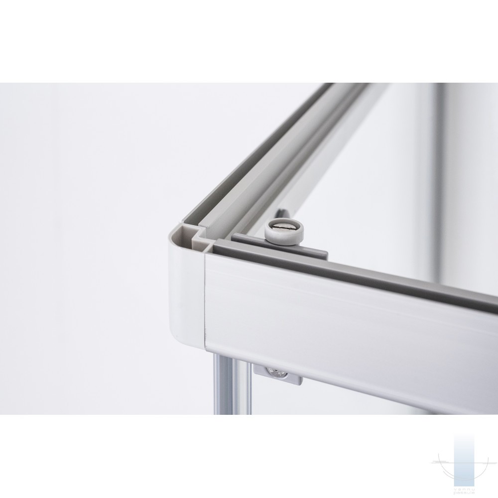 Piecu stūru dušas kabīne ar bīdāmām durvīm. Atšķiras ar īpašu hermētiskumu un drošību. Ieteicama mazām telpām, piemērota montāžai blakus tualetes podam vai izlietnei.