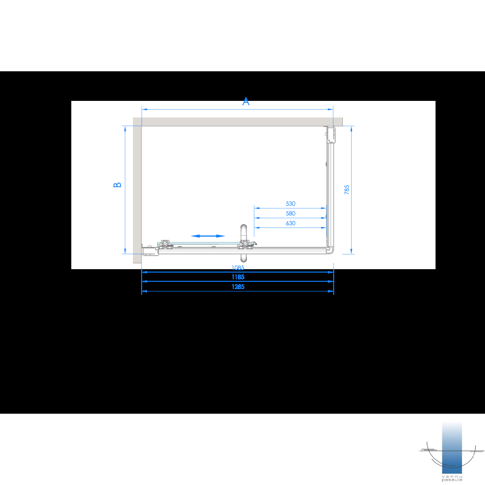 Četru stūru dušas kabīne ar bīdāmām priekšējām durvīm. Ērts un stilīgs risinājums dušai, ārkārtīgi praktisks gadījumā, kad WC moduļa vai cita aprīkojuma dēļ ir nepietiekami daudz vietas atveramajām durvīm. Īpaši hermētiska un droša. Minimālais fasādes platums vismaz 1 metrs, tāpēc dotā kabīne ir vairāk piemērota plašām vannas istabām.