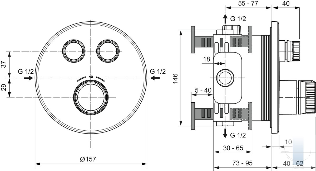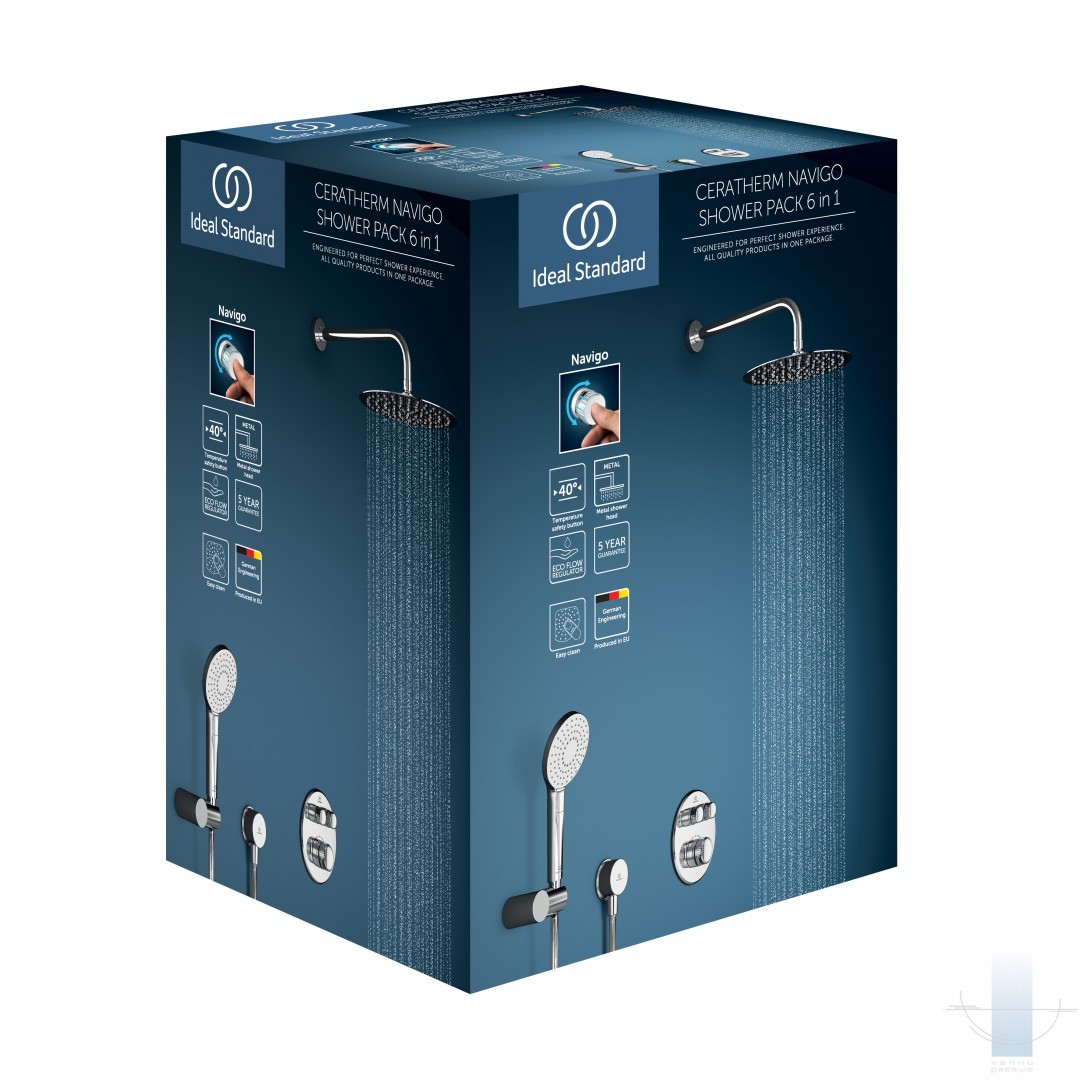 Ideal Standard Dušas sistēma Ceratherm Navigo iebūvējamā D 300 mm, komplekts, Hroms