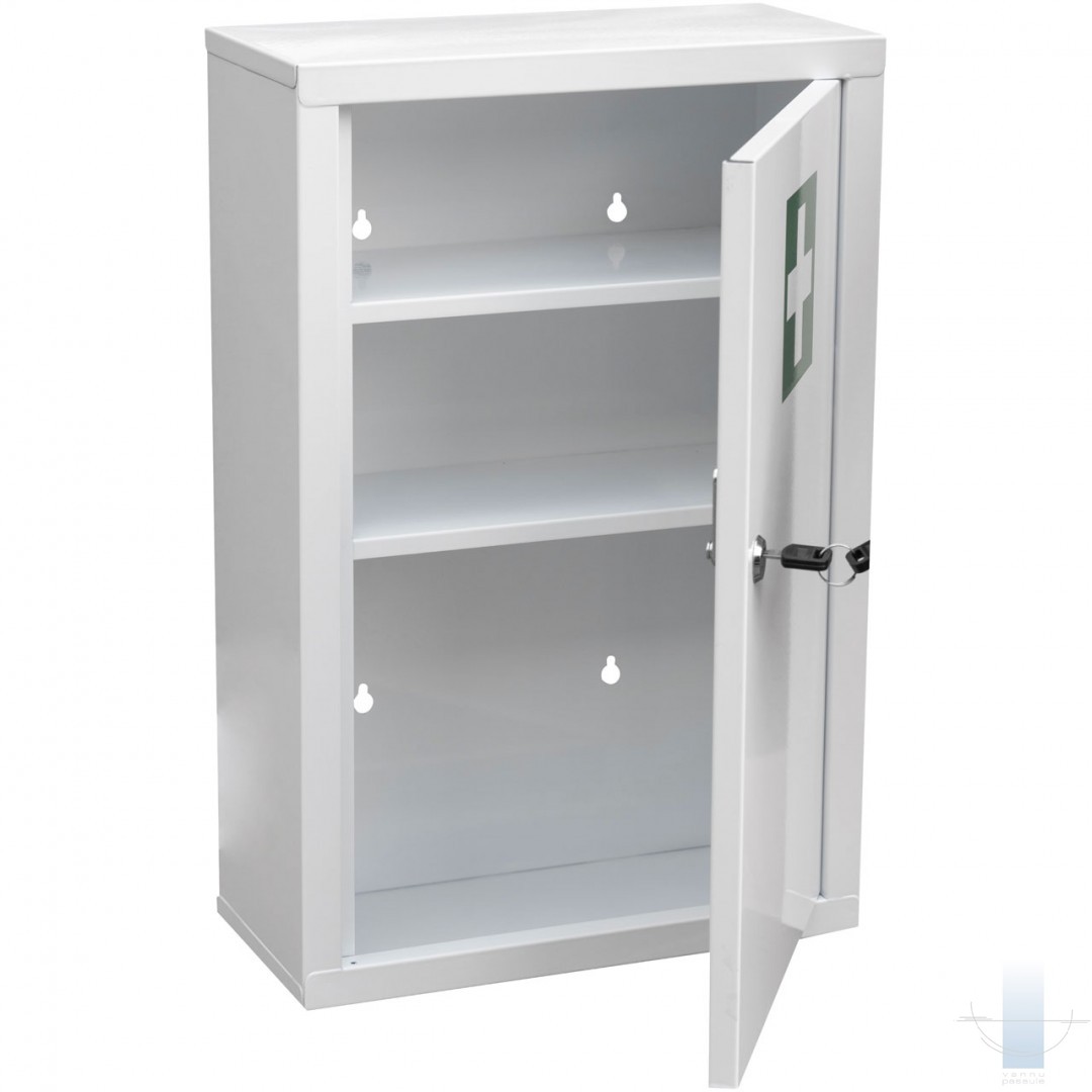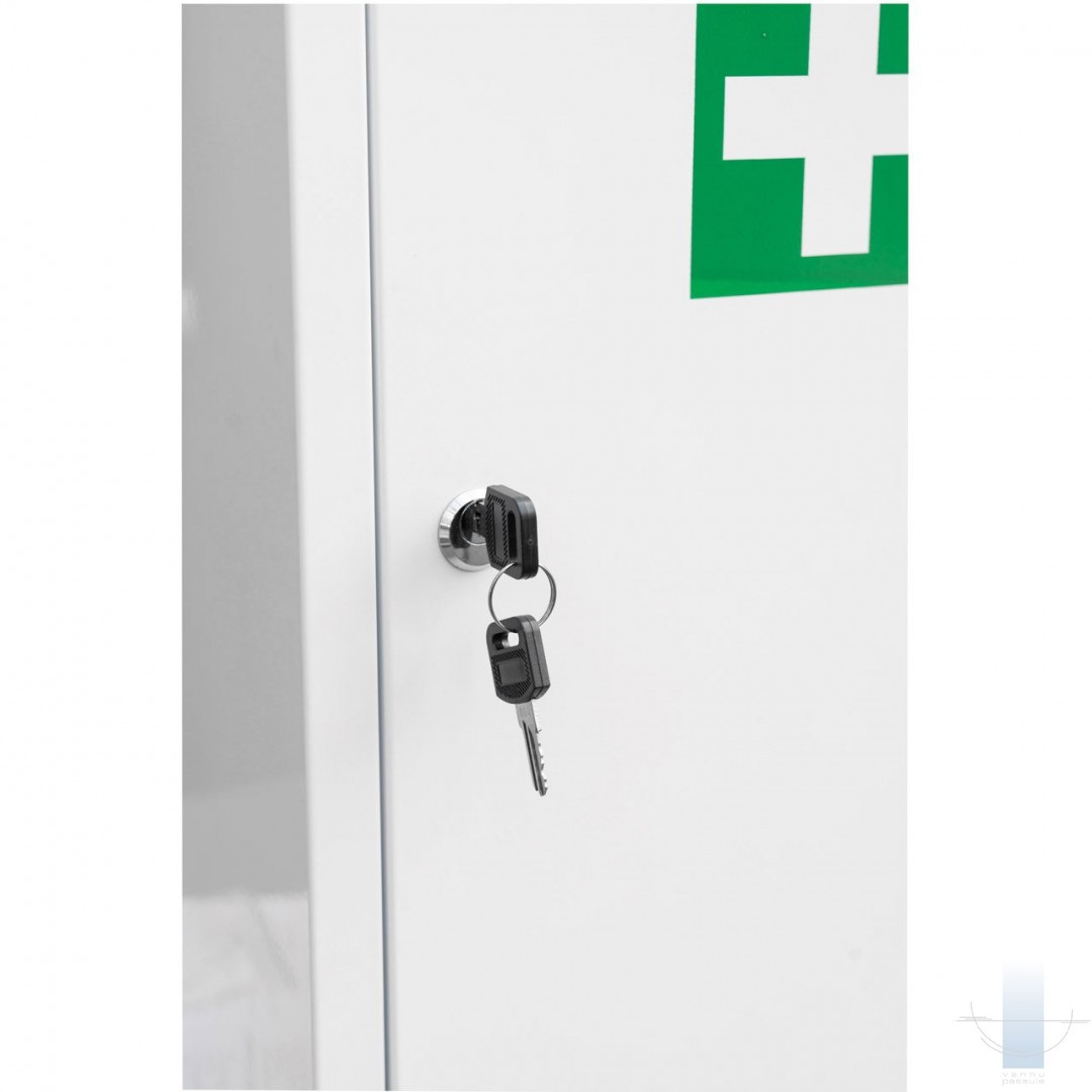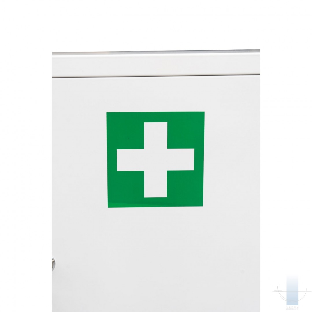 Neliels zāļu skapis ar aizslēdzamām durvīm ar krustzīmi uz zaļa fona. Pretrūsas apstrādāts pulvera pārklājums. Durvis ir atgriezeniskas, un tās var pakārt gan pa labi, gan pa kreisi. Slēdzenes un krusta simbols var nonākt nedaudz atšķirīgā augstumā atkarībā no sāniem. Slēdzene ir standarta tipa un nav klasificēta ar drošību.