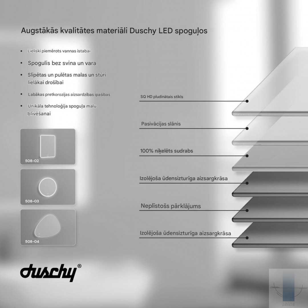 LED spogulis ar skārienjutīgu pogu, lai ieslēgtu LED apgaismojumu un pretmiglas funkciju. Pateicoties tam, ka pogas iedegas, kad spogulis ir izslēgts, pogas ir viegli atrast tumsā.