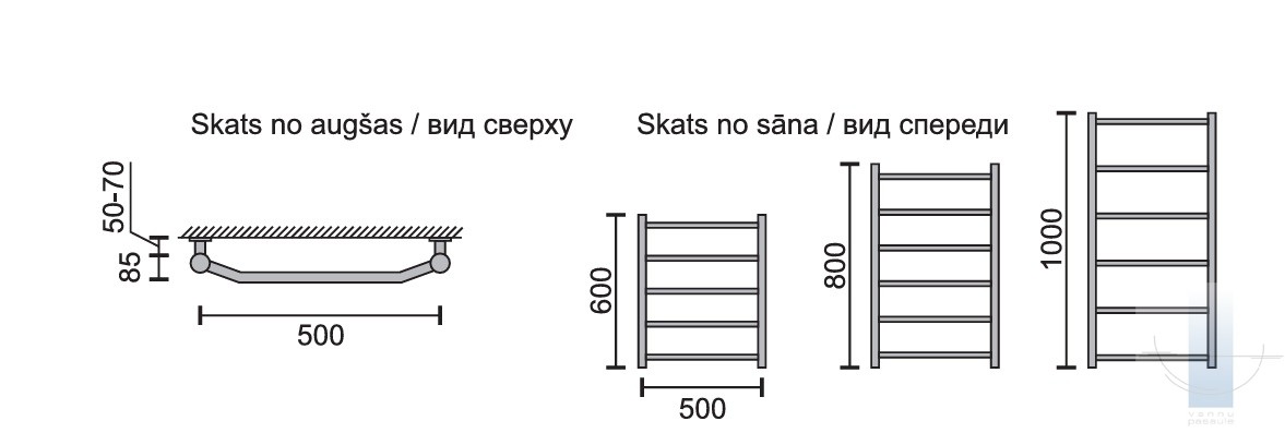 E dvieļu žāvētājs 500x600, Nerūsējošais tērauds