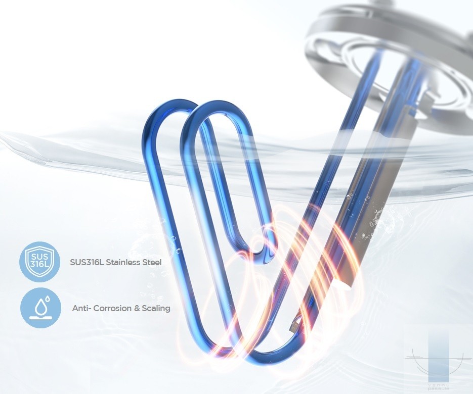 Tvertnes iekšpuse ir pastiprināta ar modernu Ti+ Sapphir emaljas pārklājumu, kas novērš koroziju un samazina kaļķakmens nogulšņu veidošanos. Tas nodrošina stabilu darbību ilgtermiņā un pagarina ierīces kalpošanas laiku. Lai apliecinātu izturību, iekšējai tvertnei tiek nodrošināta 5 gadu garantija.