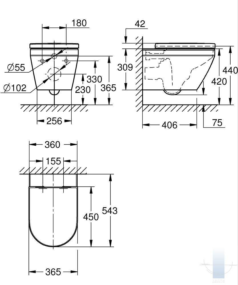 Euro Ceramic piekaramais WC ar Triple Vortex (102485SH00)