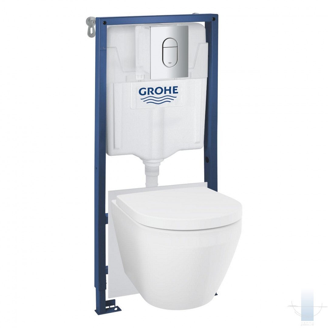 GROHE Solido 5‑in‑1 komplekts. Gatavs risinājums sienas stiprināmajam WC ar bezmalu bļodu un jaudīgu virpuļplūsmu labākai higiēnai.