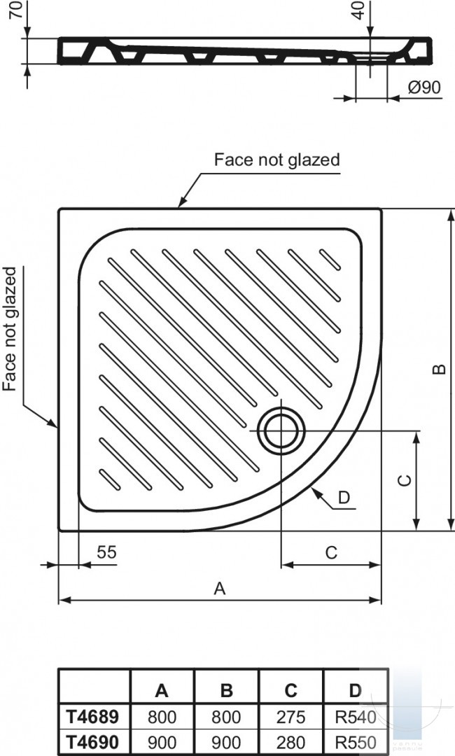 Ideal Standard - Eurovit pusapaļš dušas paliktnis 90x90 cm, Balts