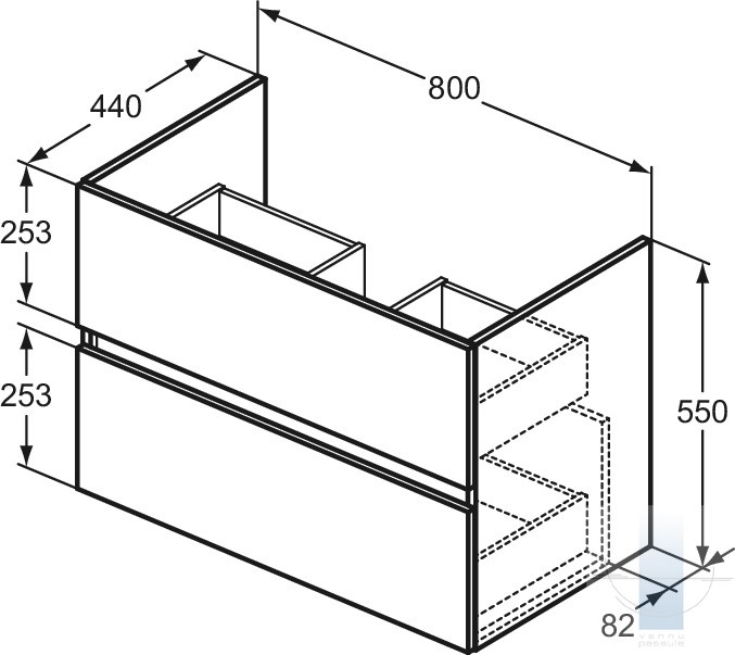 Skapītis ar 2 atvilknēm (Soft close funkcija - lēns aizvēršanās mehānisms)