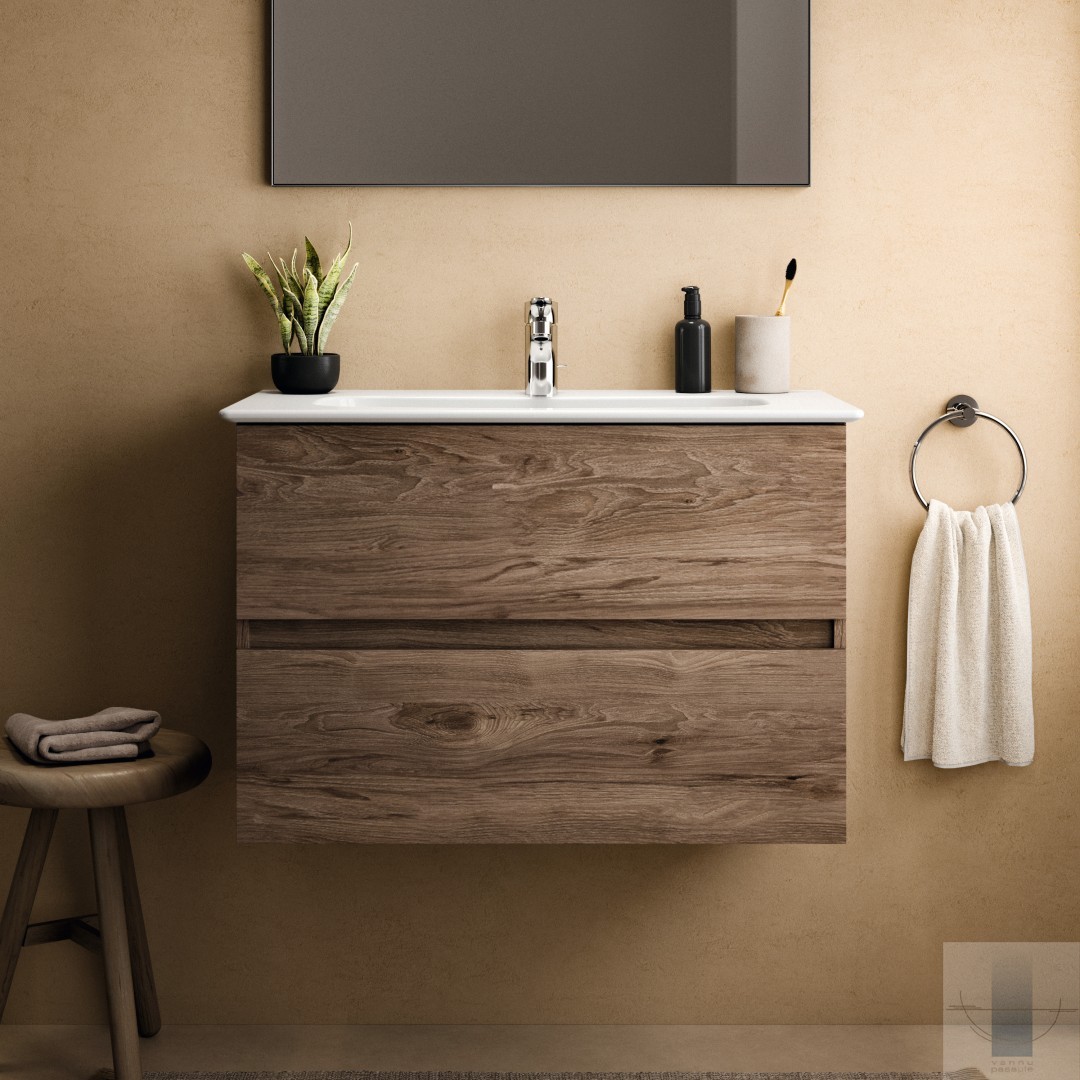 Ideal Standard - Eurovit vannas istabas skapītis 80 cm ar izlietni, 2A, Flint Hickory