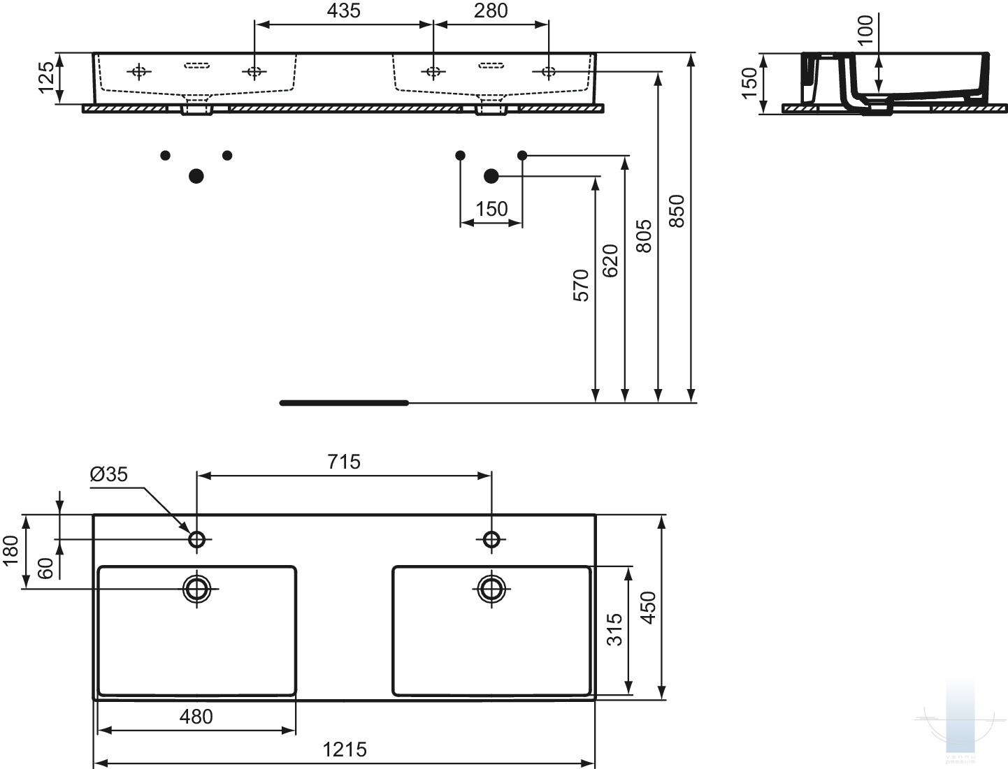 Ideal Standard - Extra dubultā izlietne ar slīpētu apakšu 121x45x15 cm, Balta